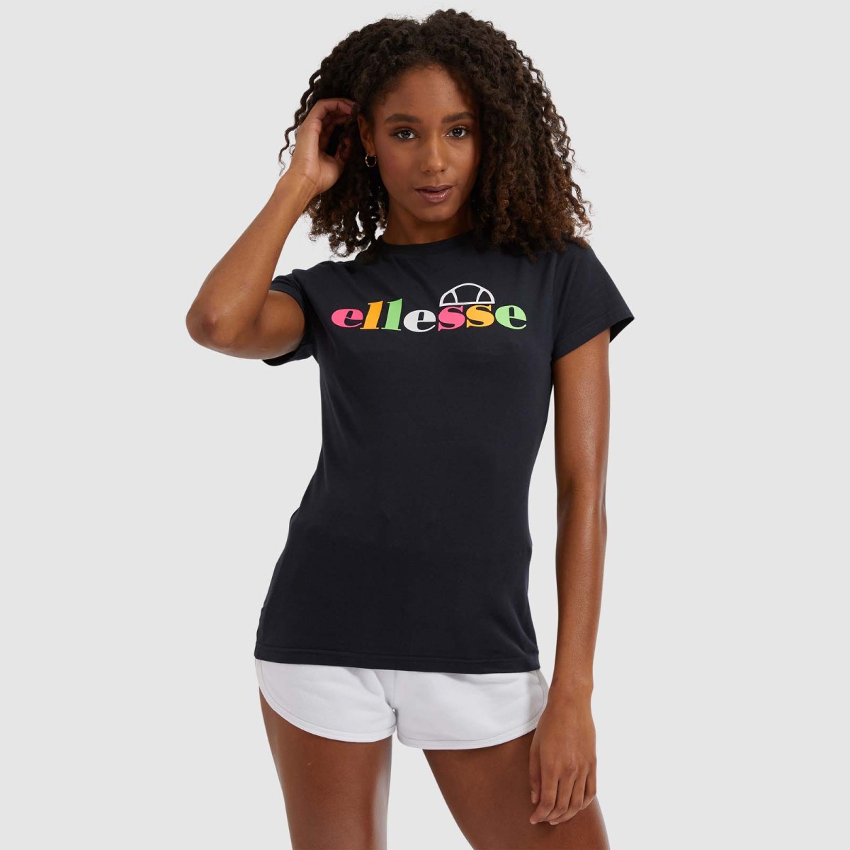 Camiseta de manga corta con logo multicolor en el pecho.