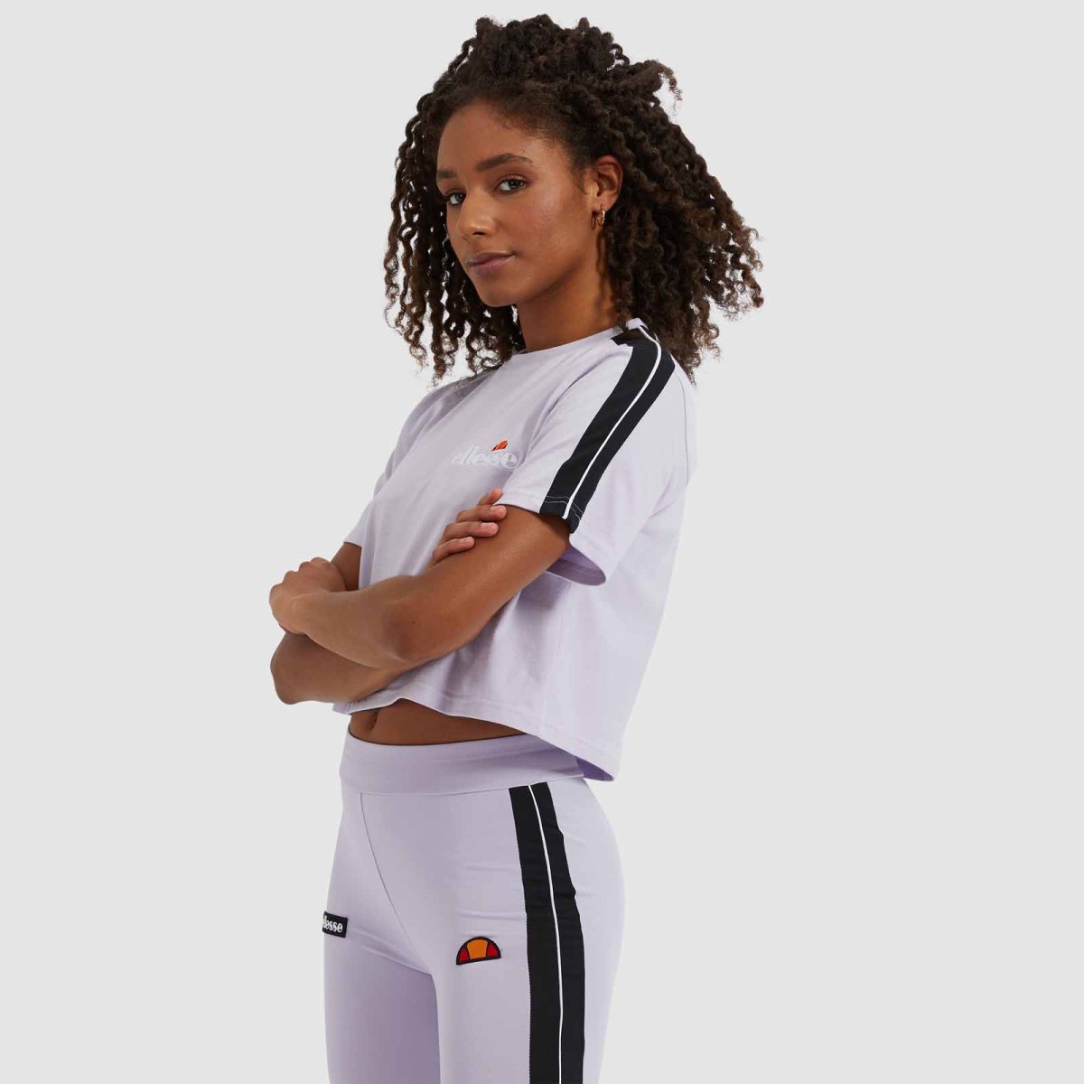 Camiseta crop de manga corta con bandas de rayas en los laterales.