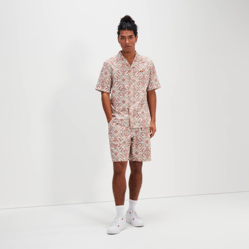 La camisa Melos. Destaca con la camisa Melos. Confeccionada en tejido satinado y con estampado integral, llévala abierta sobre un chaleco o abrochada y combinada con los pantalones cortos a juego.
