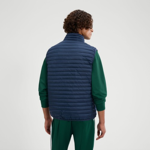 El chaleco acolchado Pal. Inspirado en las animadas tradiciones de los deportes de invierno, así es Giochi Invernali. El chaleco acolchado Pal es una réplica de la chaqueta, con su relleno de plumón sintético, el logotipo repetido en relieve y el revestimiento DWR. La marca de silicona completa el look en una silueta versátil sin mangas.