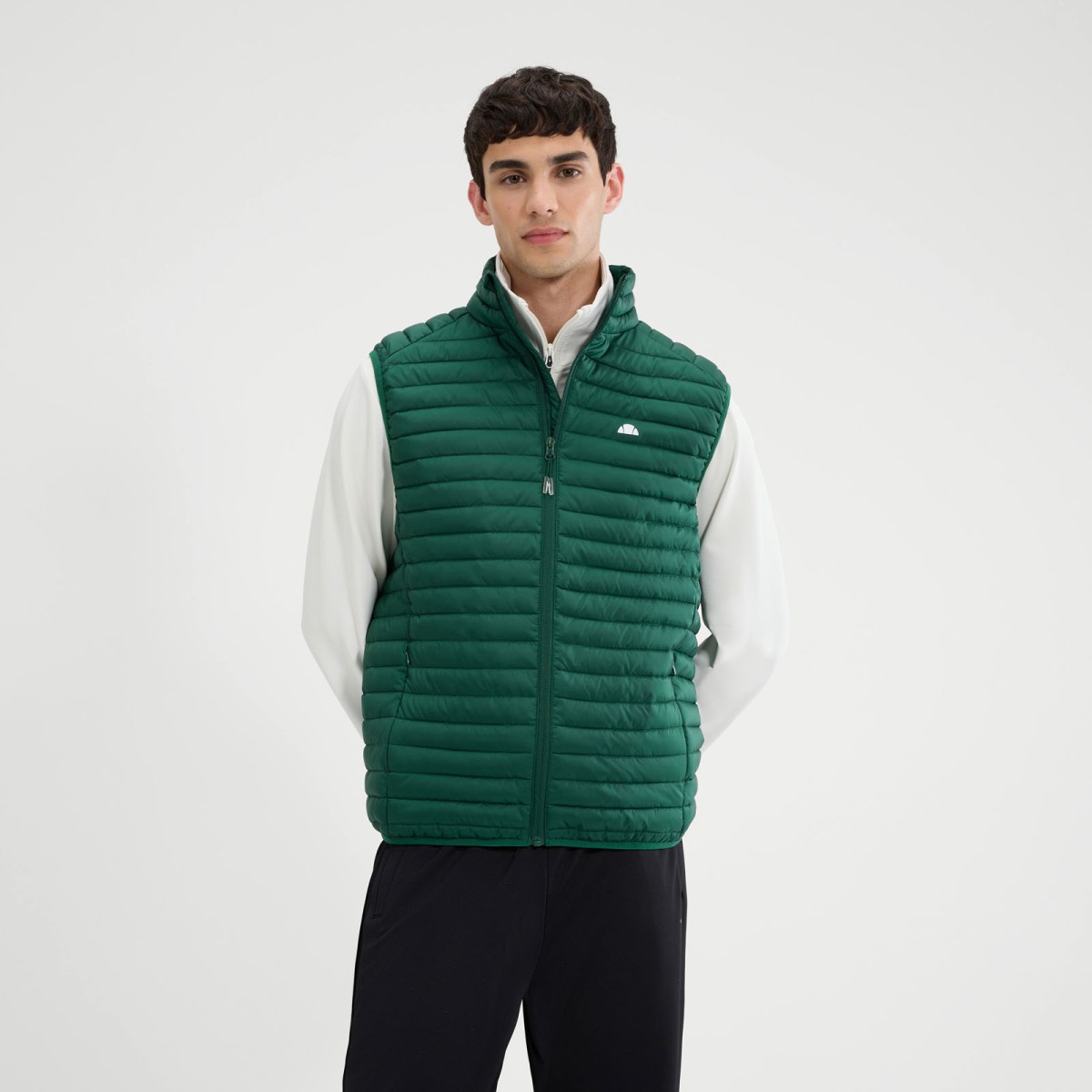 El chaleco acolchado Pal. Inspirado en las animadas tradiciones de los deportes de invierno, así es Giochi Invernali. El chaleco acolchado Pal es una réplica de la chaqueta, con su relleno de plumón sintético, el logotipo repetido en relieve y el revestimiento DWR. La marca de silicona completa el look en una silueta versátil sin mangas.