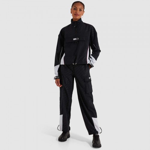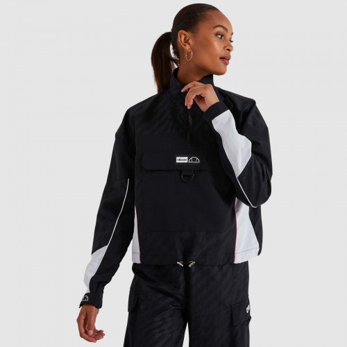 Chaqueta corta de mujer con cuello de embudo con ½ cremallera, bolsillo de bolsillo, estilosos paneles, bajo de cordón elástico, e insignia tejida de ellesse.