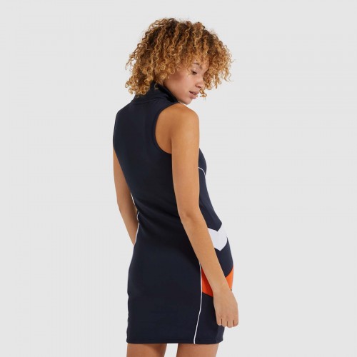 Vestido de mujer con logo de semi palla y ellesse bordado en el pecho. Paneles de colores en contraste. Cremallera de ½ largo, y cuello de canalé.