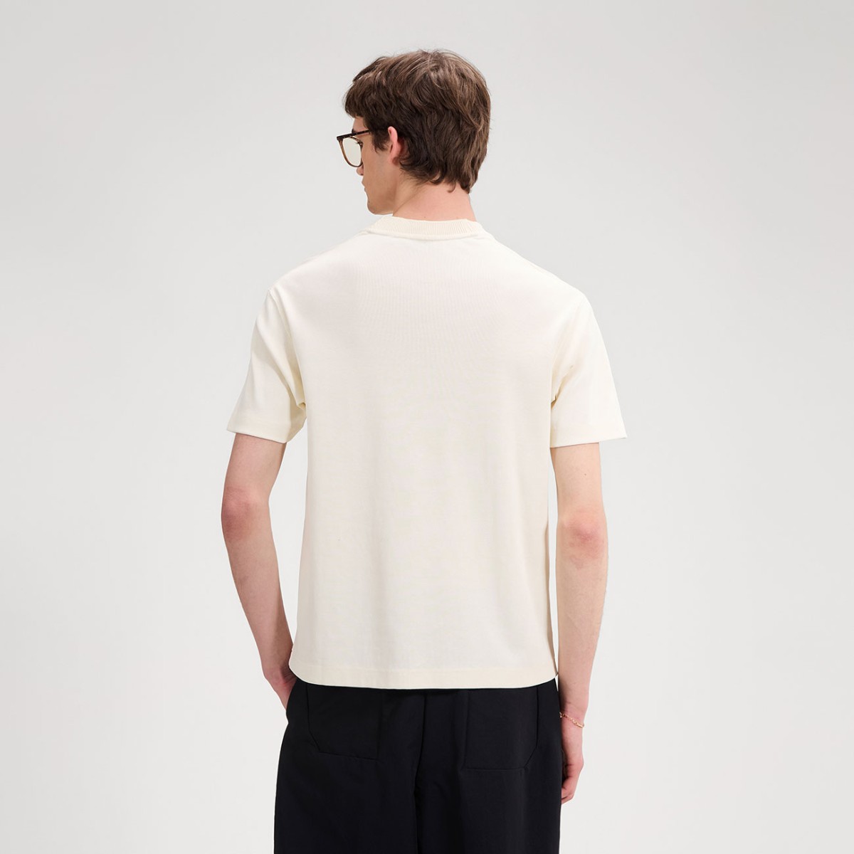 Tejido grueso con un estilo desenfadado. La camiseta Arizi está confeccionada en punto doble de algodón grueso de 320 g/m², con un corte holgado, detalles de costura y un elegante cuello redondo. Una etiqueta a tono le da el