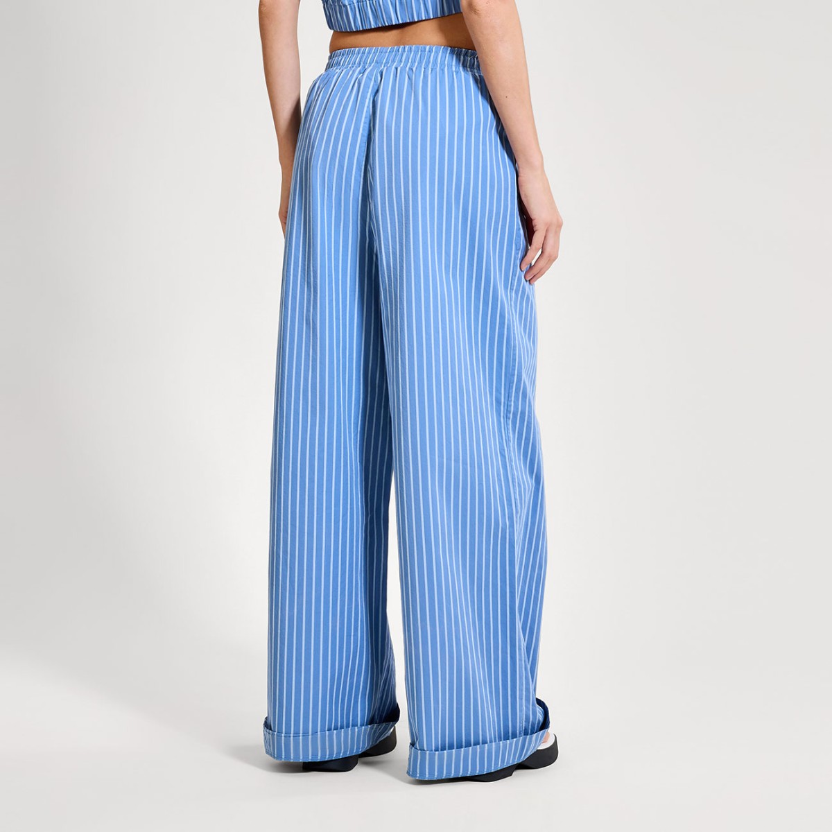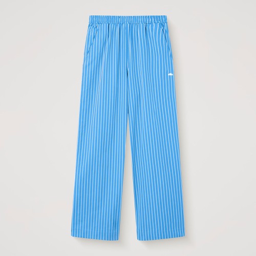 Una versión elegante de la comodidad de la Riviera, este pantalón de pierna ancha está diseñado para adaptarse a tus movimientos. Confeccionado en algodón a rayas de alta calidad para una silueta estructurada pero relajada. Id