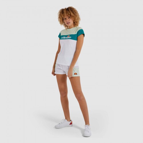 Calções de mulher com painéis de cores em contraste, e cintura ajustável. Com semi-esfera e logotipo da Ellesse bordados em ambos os lados.