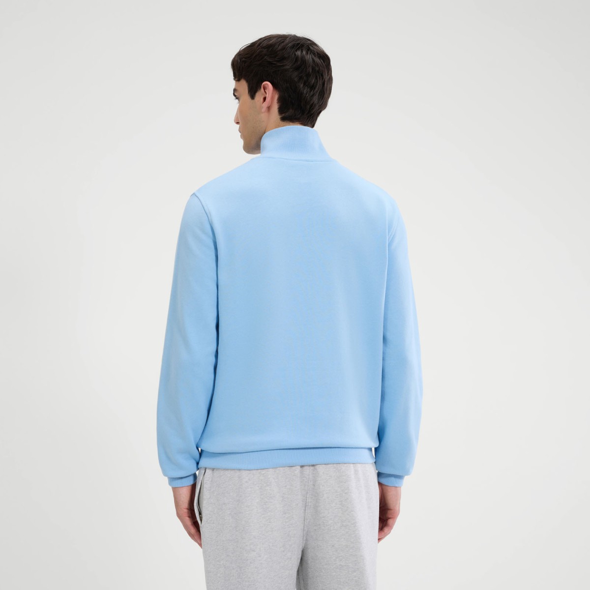 A Pelegrini 1/4 Zip. Os clássicos que resistem ao passar do tempo. Confeccionada em felpa de alta gramagem, a Pelegrini 1/4 Zip tem um colarinho canelado grosso e dois emblemas bordados, o que lhe confere um acabamento limpo, mas inspirado na tradição.