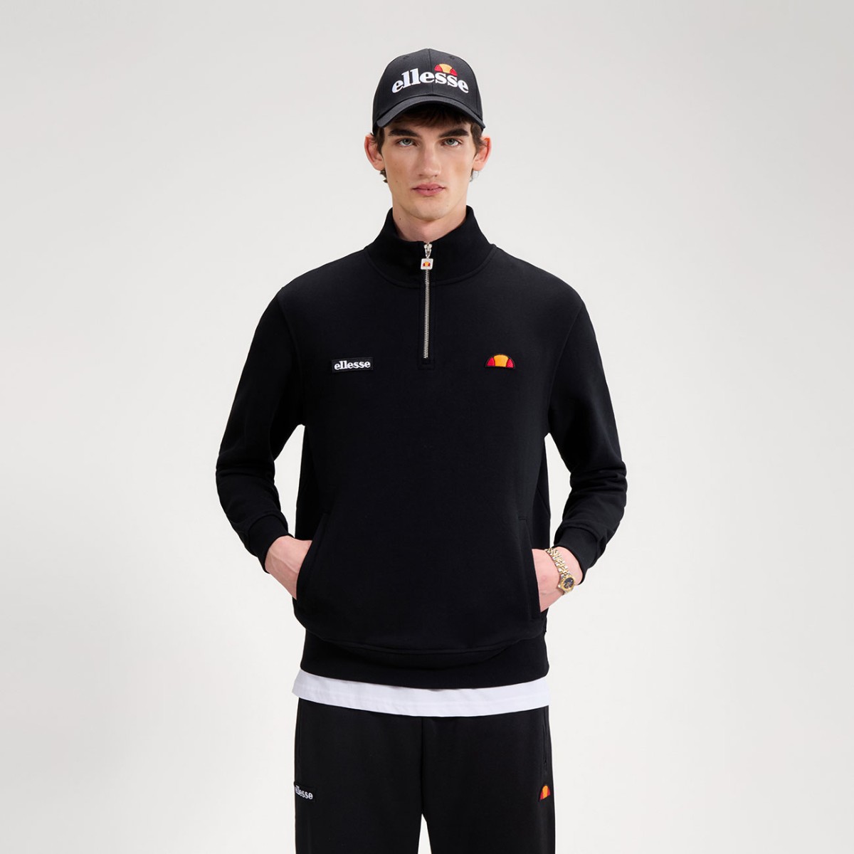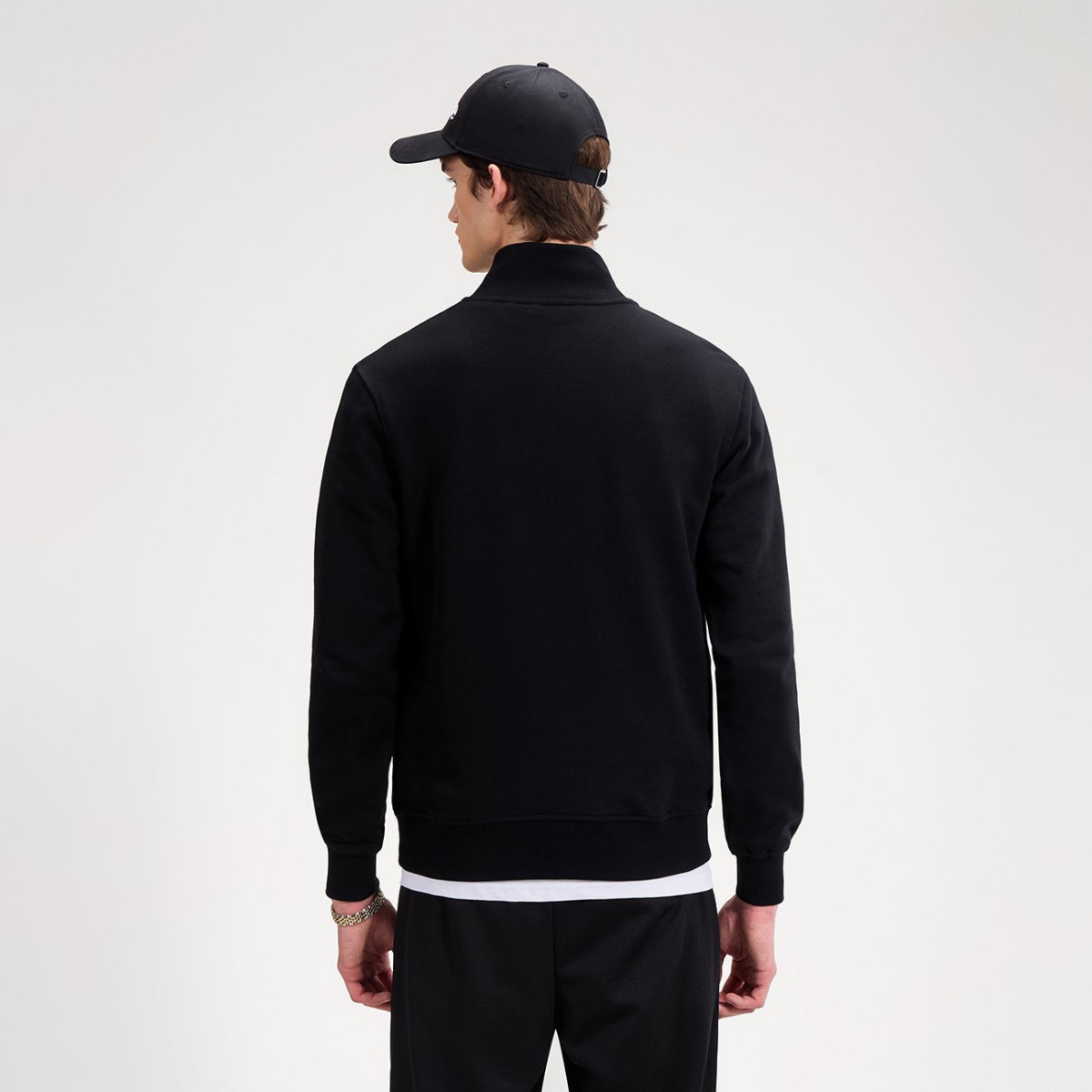 A Pelegrini 1/4 Zip. Os clássicos que resistem ao passar do tempo. Confeccionada em felpa de alta gramagem, a Pelegrini 1/4 Zip tem um colarinho canelado grosso e dois emblemas bordados, o que lhe confere um acabamento limpo, mas inspirado na tradição.