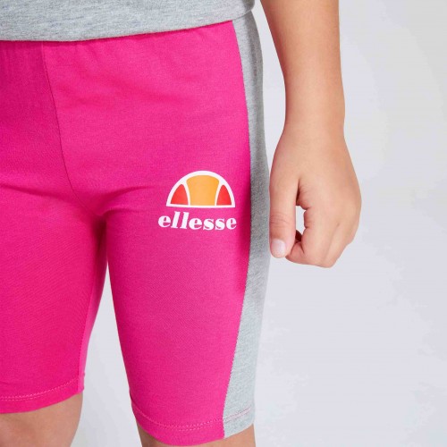 Malhas infantil feminina estilo ciclista com estampa de plastisol e semi-palla, marca Ellesse na coxa. Painéis com cor contrastante nas laterais.