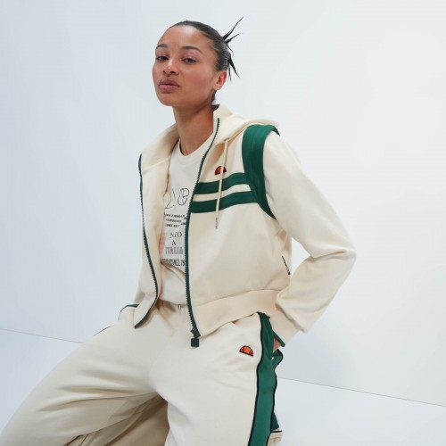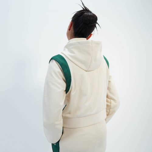 Fato de treino Perna Crop. Confeccionada em malha confortável, esta camiseta de treino se tornará sua peça de roupa preferida. Com corte descontraído, punhos canelados, capuz com cordão e detalhes listrados, é finalizado com o emblema da nossa marca no pe