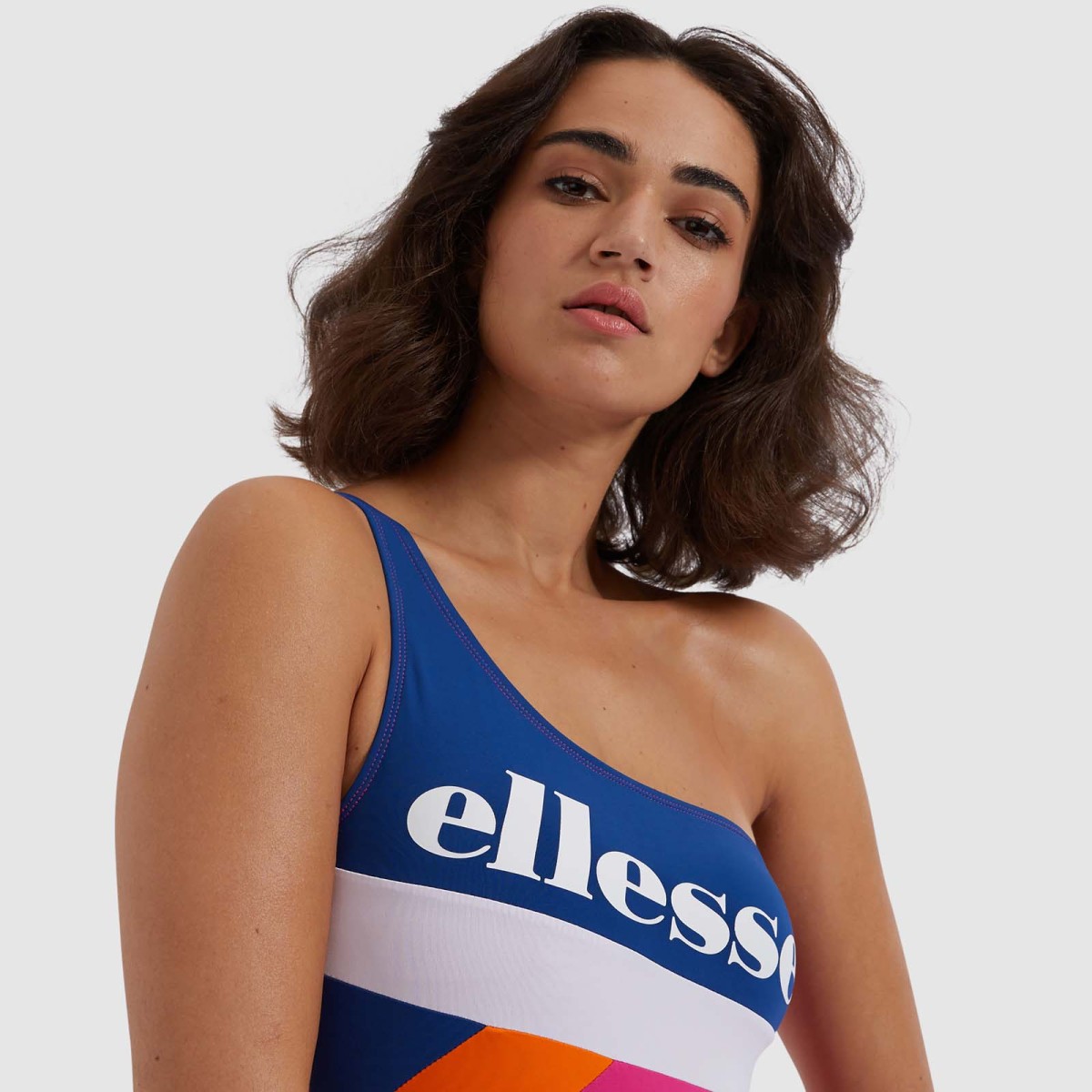 Este fato de banho com uma única alça traz um toque moderno aos dias relaxados na praia.