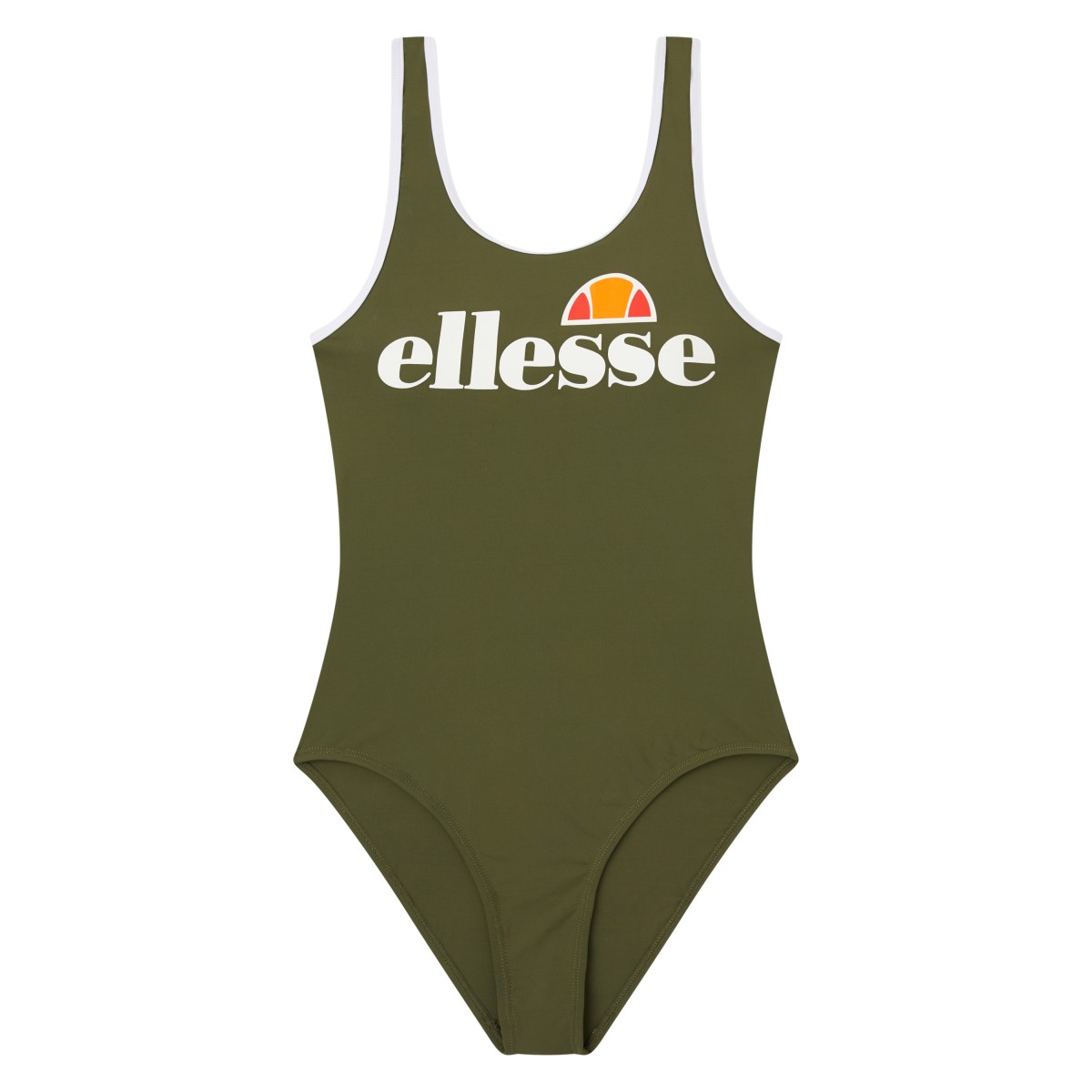 Fato de banho feminino com logotipo maxi no peito e nas costas.
