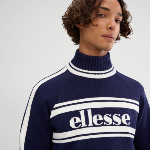 A camisola de malha Pellini. Das pistas cheias de adrenalina ao ambiente chique do après ski, isto é Sartoria. Confeccionada numa mistura de lã com painéis contrastantes e logótipo jacquard no peito.