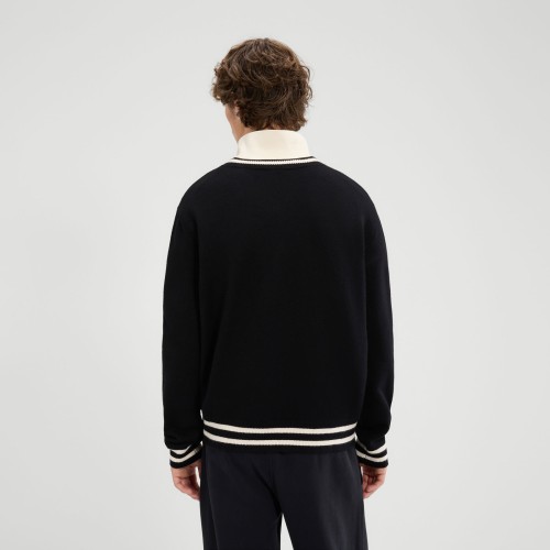 Camisola de malha Giocios. Inspirada nas vibrantes tradições dos desportos de inverno, esta é a Giochi Invernali. A camisola de malha Giocios apresenta um logótipo jacquard apelativo no peito, uma meia bola bordada e acabamentos técnicos no pescoço, punhos e bainha para um acabamento refinado.