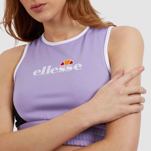 T-shirt de manga cava com logótipo bordado no peito, bainha elástica e fecho de zíper nas costas.