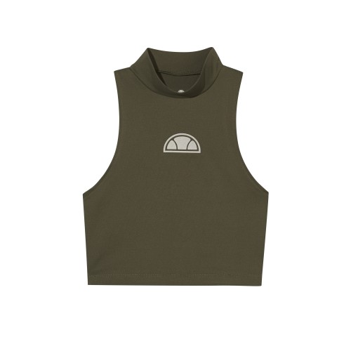 Top com gola alta desenhado com material absorvente de suor para a prática de ioga.