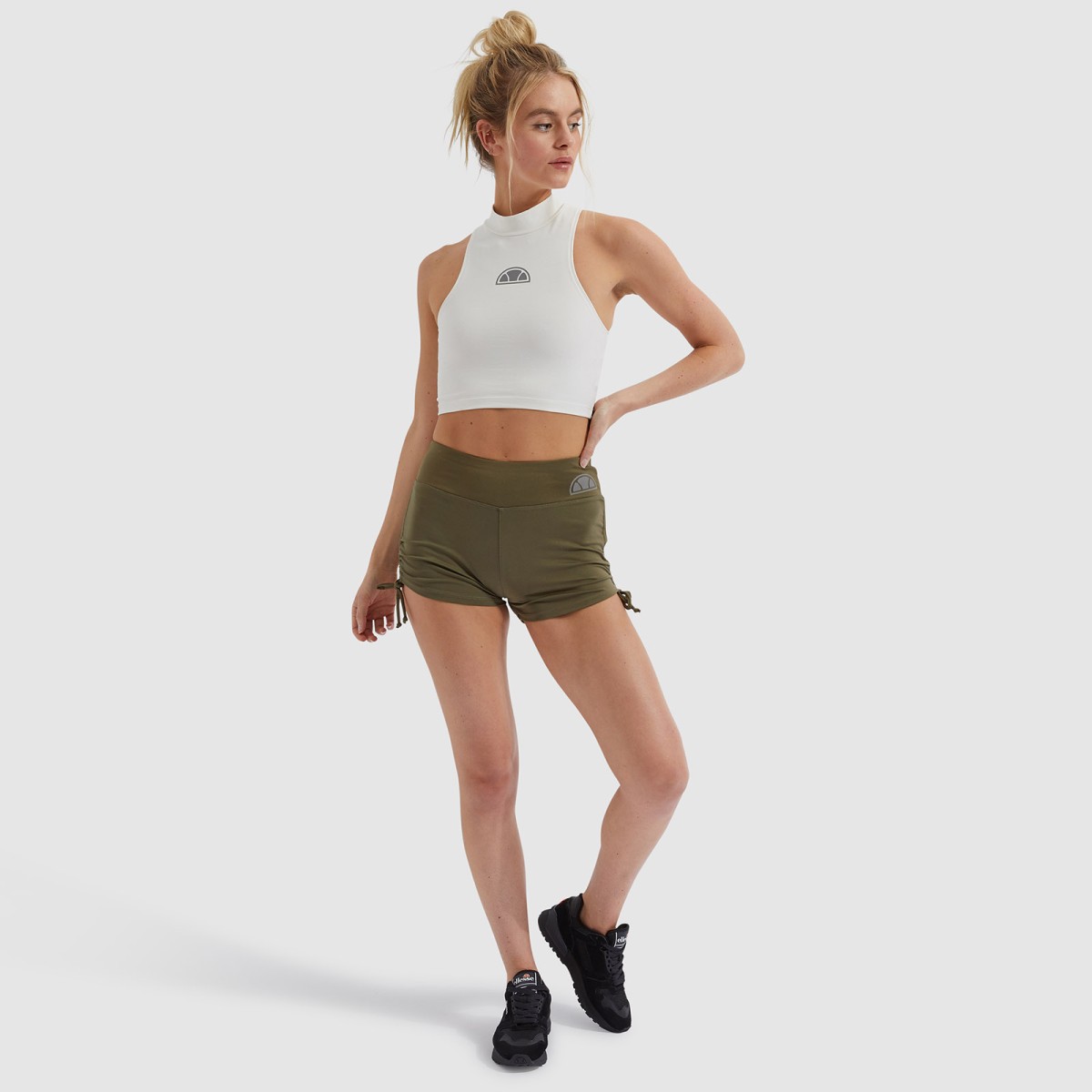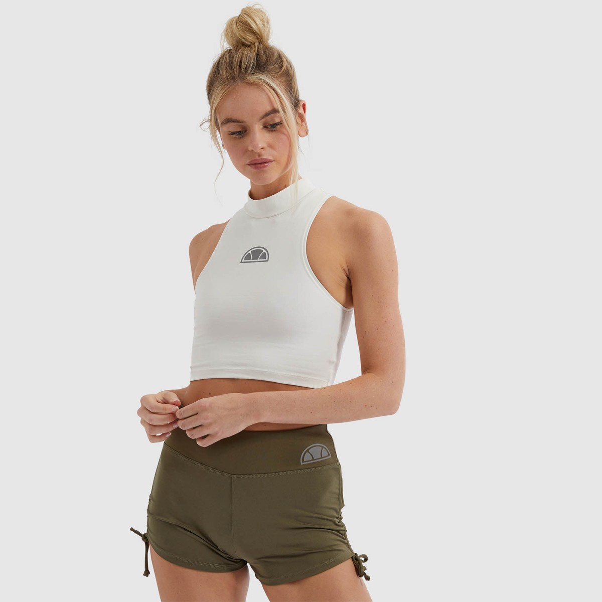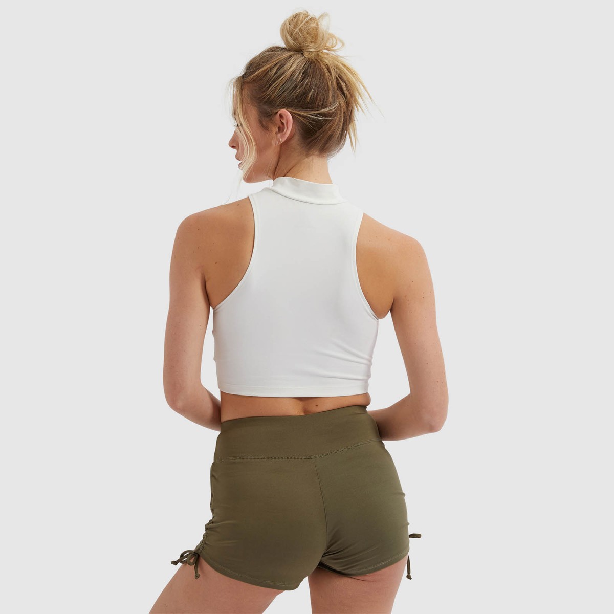 Top com gola alta desenhado com material absorvente de suor para a prática de ioga.
