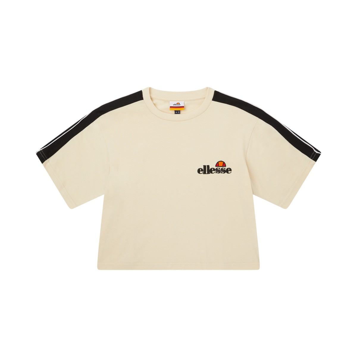 T-shirt crop com manga curta e listras nas laterais.