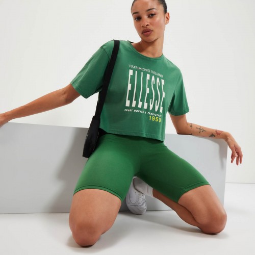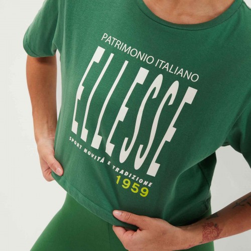 Uma versão divertida da camiseta clássica, este top curto vem em corte regular com decote canelado, estampa gráfica de plastisol na frente e emblema bordado na manga.