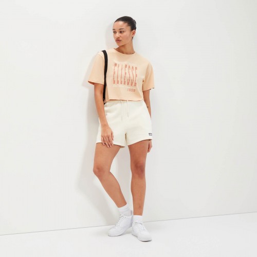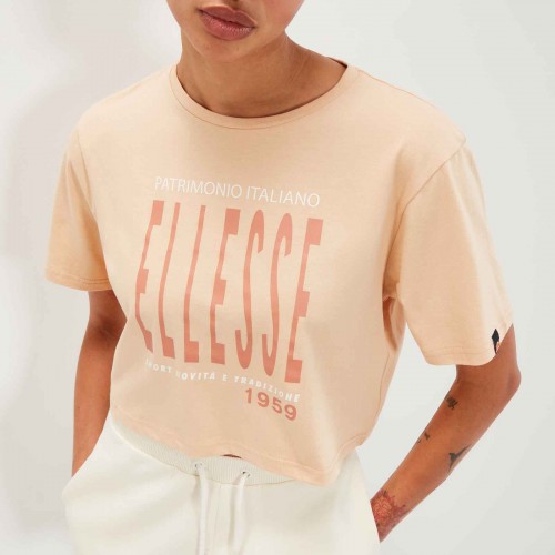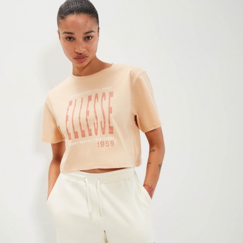 Uma versão divertida da camiseta clássica, este top curto vem em corte regular com decote canelado, estampa gráfica de plastisol na frente e emblema bordado na manga.