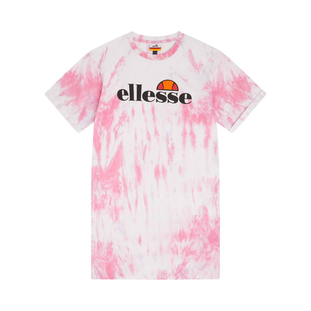 Vestido tipo t-shirt de manga curta com estampado tie dye e logotipo maxi no peito.